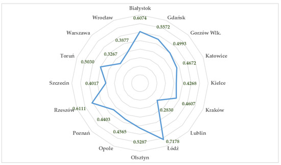 4.2. Results of the Application of Multi-Criteria Analysis in the Evaluation of the Efficiency of the Municipal Management of the Analyzed Cities