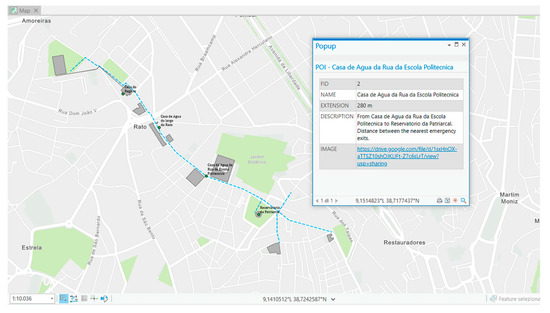 Subsequently, the georeferenced map was combined with a base map provided by ArcGIS Pro [46] to create a shapefile of the paths of the Aqueduto das Águas Livres and secondary aqueducts (Figure 10).