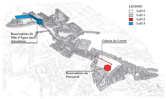 The 3D GIS city models, based on the geometric complexity, dimensionality, and attributes of the 3D modeled object [25] are characterized by a multi-scale representation referred to the level of detail (LOD) concept of the OGC standard [26]. LOD 0 and 1 models can be generated from the available cartography, while for higher levels of detail, more information must be obtained to help define the volumes and architectural and structural details of the buildings that compose the urban environment. For this second aspect, the data obtained from geomatic surveys, as point clouds, can represent a form of enrichment of the volumetric and spatial definition of the individual building [27,28] and for underground environment.