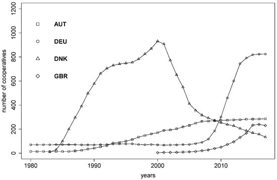 The number of energy cooperatives in Austria, Germany, Great Britain, and Denmark [1].