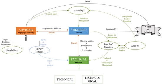 Nevertheless, it is inevitable that some of the considerations made share some commonalities and are mandatory and valuable even during the definition of a business model since, obviously, for coordinated and functional management, a shared vision and shared values must be defined. The governance model formulated can be identified as an organisational governance model in conformity with ISO 26000 [71], which defines it as “a system by which an organisation makes and implements decisions in pursuit of its objectives.” Particularly, a focus on how the members can be empowered to take a more active role in community activities is the object of investigation.