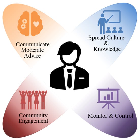Communication and dissemination of information are crucial for the energy community. Because of the known issues related to active participation and acceptance of projects aimed at sustainability issues, an internal role has been prototyped to contribute to the alignment between individual members and the community’s institutional bodies, ensuring active participation and a greater acceptance of the project. Such a new role is the community manager (CM). In the outlined governance model, the CM’s internal role is of paramount interest as the facilitator for fulfilling the community’s mission and vision. The CM must have technical and social skills to manage the local community. The CM’s widespread work can guarantee the users’ alignment by creating further synergies among members and reducing conflicts, increasing the project’s acceptance with economic, social, and environmental follow-ups. The CM role is the pivotal junction between the Advisory and Tactical areas, operating strategically. The CM could also assume a role within the BoD, but it is not mandatory. The CM can be a community member, or a manager hired by the REC. This choice heavily depends on the context in which the initiative is developed, the participants and the relationships between them, and the level of specialisation required. The CM operates according to the rules of the community, which have been laid out in the statutes, and supervises the operations to ensure they are carried out accordingly. The CM can be responsible for the apportionment of incentives among community members and may carry out referral activities with the GSE if mandated. The CM may be entrusted with the organisation of scheduled maintenance of the community facilities. In this context, the CM can control the third parties that provide goods or services to the community to allow the right of association and the right to leave the community to everyone. These activities require configuration updates that must be communicated to the GSE. The CM may be entrusted with additional tasks, such as, managing the relationship with users, not only administratively but also aiming to create greater synergy within the community. The CM, thanks to diagnostic information provided through energy-monitoring and reporting systems, can support users with reports containing statistics about their energy performance and recommendations for increasing it. This activity of raising awareness and stimulating proactivity is also one of the cornerstone principles of energy communities or PEDs. The CM may also promote community awareness to increase territorial inclusiveness, expand the REC’s catchment area and action, and create connections and relationships between member and non-member entities that can create virtuous win-win cycles. Testing internal sentiment is relevant to stimulating active participation of and acceptance by users. Therefore, monitoring activities to probe the level of member satisfaction could be part of the CM’s activities, and it may be useful to check the status of the project and, possibly, identify and resolve issues. The CM’s general tasks are summarised in Figure 8.