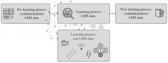 During the learners’ path, and the data gathering process, LMS is a data source for learning analysis and measuring using KPIs. Another source can be Massive Open Online Courses (MOOC) platforms [17], web-based learning tools (web 2.0/3.0), and audio devices such as microphones, cameras, keyboards, social networks, and others (Figure 2).