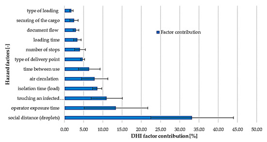 Based on the results obtained, it was possible to compare the importance of individual hazard factors for the delivery services. The results are shown in Figure 6.