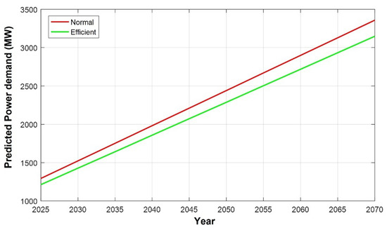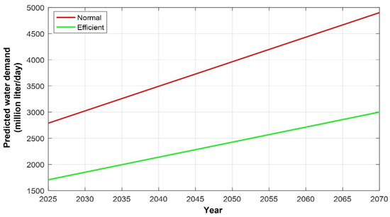 The utility management system of Dhaka consists of three managing sectors: water, gas, and electricity. “Dhaka Water Supply and Sewerage Authority (DWASA)” published the demand and supply of water in terms of million liters per day in an annual report for 2018–19 [67]. The data interpreted in the graph is the prediction by the linear regression method based on the data published in the annual report. An article claims the system loss of DWASA is 38.78 percent and describes how the transparency of the billing system could bring the system loss down [68]. A study forecasted that in 2050, more than 12.37 million people may be deprived of quality water supply in Dhaka if proper solution steps are not taken [69]. Figure 11 depicts predicted water demand with and without system loss in the upcoming years.