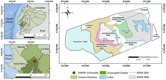 ESPOL is considered the first green university in Ecuador, and according to the UI Green Metric World University Ranking, it is among the greenest universities in the world [55]. In addition, the campus has academic and administrative infrastructure areas and important areas declared as environmental protection areas.