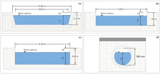 Existing channels. (a) Point A drainage system, (b) Point B drainage system, (c) Point C drainage system, (d) Point D drainage system.