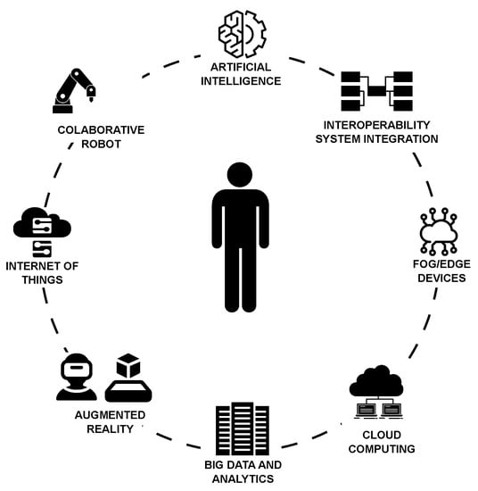 I5.0 ecosystem with human–centered technologies.