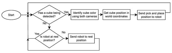 With the use of the ESVS, the system’s cognitive capabilities were improved in relevant ways. Firstly, the system enabled the perception of depth through computer vision triangulation, providing height calculations for objects in the workspace. Then, it enhanced the color recognition capabilities by utilizing two cameras and processing two views of the same object, enabling a more comprehensive color analysis.