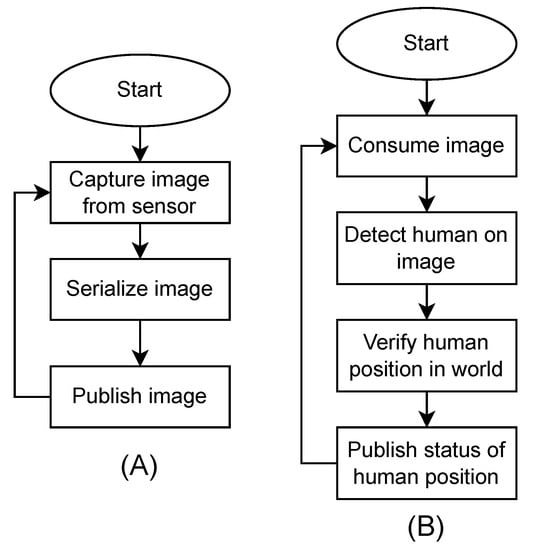 The piece of software that was implemented can be categorized into three distinct components as described in the following subsections: edge stereo vision system, collaborative robot node, and human detection node.
