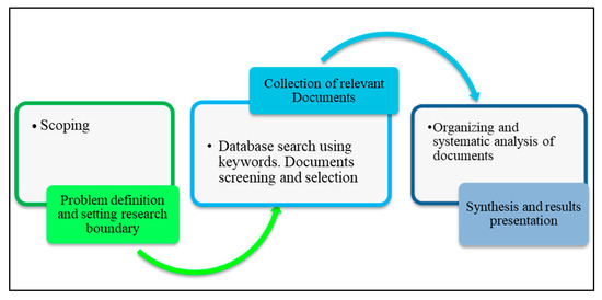 The present study employs the desktop research method of identifying, gathering, and analyzing relevant data from secondary sources and the existing literature through the Internet. This approach is gaining popularity because it is fast, inexpensive, and supports collaboration, and because of the existence of a vast amount of data online [84]. It involves three iterative stages: (a) scoping, (b) collection of relevant documents, and (c) data analysis (Figure 2). The scoping stage involved understanding the research problem and setting the study objective and boundary. The objective of the present research was to explore the extent of digitalization and smartification of urban services during and post the pandemic era and critically analyze how they can help foster urban resilience, with Saudi Arabia and Makkah city as the study boundary.