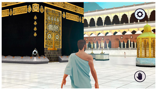 Another smart initiative is launching a virtual reality experience to enable pilgrims and worshipers to experience the touching of the Black Stone due to the COVID-19 pandemic that restricted physical contact with the Black Stone (Figure 5). The Black Stone is a holy stone located in the eastern part of the Kaaba, in the Grand Mosque of Makkah. It symbolizes the beginning and endpoint of the Tawaf ritual. Virtual reality brought an additional digital and temporary solution that allows pilgrims to connect spiritually with the holy sites. Likewise, pilgrims can explore the other sacred sites visited during the pilgrimage, such as Mount Arafat, Muzdalifah, and Mina [108].