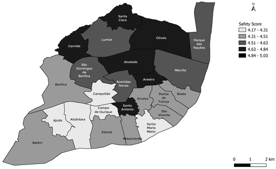 Safety scores across Lisbon parishes.