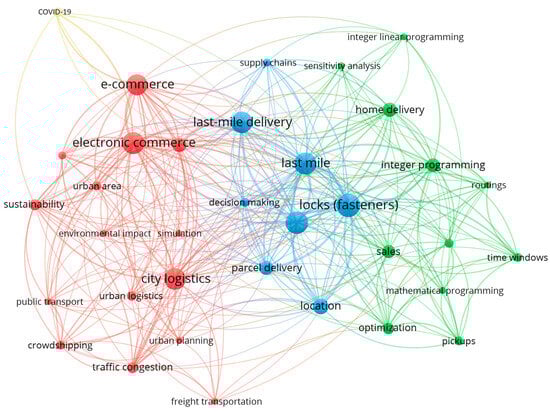 Bibliometric network visualization of all keywords related to parcel lockers.