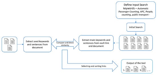 The process for identifying target companies involved in producing or selling APC systems utilised a custom-built smart search tool. This tool employed a circular methodology, where its output—a collection of various online resources such as links, articles, and social media posts, sorted by relevance—could be re-inputted for further research. The tool’s structure is depicted in Figure 2. Keywords were selected based on characteristics of both the device (e.g., technology, accuracy, and environmental impact) and the company (e.g., pricing strategies). Initially, three reference companies (selected based on simple key-word search and prior knowledge about such companies) provided ‘seed’ keywords and sentences, which were processed using the Rapid Keyword Extraction (RAKE) Algorithm []. This approach mitigated the limitations of human-only keyword searches.