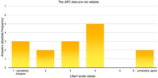The cost of APC systems was determined by a linear combination of internal (allocated resources) and external (components) costs, weighted by factors a and w. The weights (wn) were obtained from the survey. The averages of the responses on the Likert scale (1 to 6) were calculated and then normalised using Equation (2).