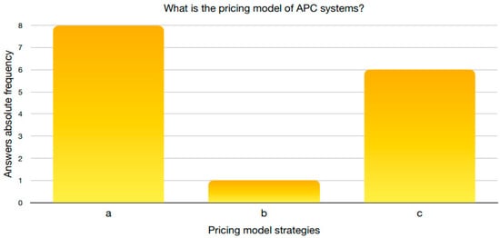 In continuing the work begun, it is our intention to broaden the survey audience, to collect more data on pricing policies and components, and to monitor the evolution of technology and the appearance of new systems on the market. This is particularly important because in the literature, to the best of our knowledge, there are no indicators allowing for the comparison of APC systems from a financial point of view. Thus, we need to collect more data to try to identify thresholds to facilitate the comparison.