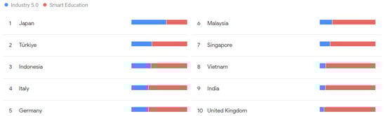 - Integration of smart education within Industry 5.0: we will examine the incorporation of smart education in Industry 5.0, focusing on collaborative learning, human–robot interaction, competency-based education, skills assessment, and corporate partnerships;