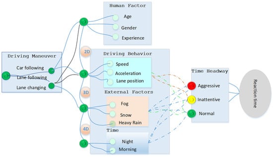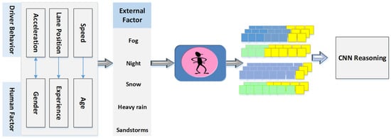 One strategy involves leveraging deep learning models to extract features from data as described in Table 1. Subsequently, these features serve as input for various machine learning schemes, including nearest neighbor, random forest, naïve Bayesian network (NBN), decision table schemes, and others. The extraction of features based on naturalistic driving data holds pivotal significance for analyzing driving behavior, especially in the context of safety-critical events. While human driving behavior can be identified, its control is challenging. Human drivers are influenced not only by external factors, which can be estimated and predicted, but also by internal factors affecting cognition that are challenging to distinguish or control. In contrast, for Autonomous Vehicles (AVs), both internal and external factors are predictable, as depicted in Figure 4.