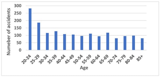 Age versus number of accidents.
