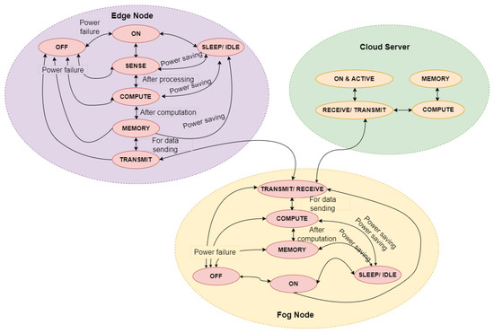 The high-level IoT architecture consists of different levels termed edge node, fog node, and cloud server. The edge node comprises different sensor units integrated with the microcontroller and communication module. The data aggregated from the sensor units is transmitted to the higher levels called fog nodes. The application part of the hierarchy is the cloud server. A detailed explanation of the different nodes is described in detail in the sections below.