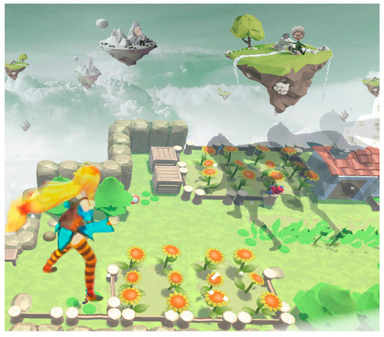 “Fit” represents health, symbolizing that this game will promote physical and mental well-being for older adults. Fit Islands will primarily focus on Exergaming and will create a 3D gaming world for older adults in China. In Fit Islands, players will assume the role of lively animated characters living on their own floating village. These villages are like individual islands, which also represent lonely older adults in the city. There are different scenarios on the island, allowing players to freely explore and wander the map through simple operations. On the islands, players can visit shops, cultivate crops, interact with friends on their contact lists at the post office, and play games at the game center. Elderly players will fully immerse themselves in their own gaming world, enjoying different music and game experiences. The game will be targeted at all Chinese older people, to give fairness and accessibility to older people with different abilities. Therefore, the game is designed to include two forms of exercise, full-body standing exercise and upper-body exercise. Considering the cost and accessibility of the game, Fit Islands will be available for public download and installation in the form of an online game (see Figure 3).