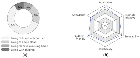 Overall, leisure activities of older adults are mostly sedentary [73]. In terms of physical activity, square dance is the first choice of middle-aged and older adults in China [74]. But in recent years, conflicts around music noise and music venues have been common in the city. China is promoting a three-tiered elderly care system, with plans for 90% of older people to stay at home, 7% in community centers, and 3% in institutional care centers. Most older Chinese now own their own private living space. The average rural older person has 1.93 rooms, while the average urban older person has 2.79 rooms [75]. However, most of the existing living environments for Chinese seniors do not meet the needs of seniors in terms of usage. There is also a lack of community facilities for different functions, such as activity centers for older adults, physical exercise centers, barrier-free facilities, and other appropriate community facilities, which limits the space available to older adults and reduces their quality of life. China’s traditional “family pension” is facing increasingly serious challenges. At the same time, China’s elderly care products and aging services such as “institutional pension” and “community nursing service” [76] have not yet developed to the extent that they can meet the needs of the aging population, and are not yet an alternative to “family pension” [69].
