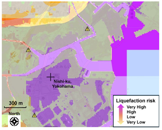 Yokohama is located in the Tokyo metropolitan area. Originally, it was planned to use construction debris from large-scale developments to fill the land, but in reality, most of the fill material consisted of sand from Mt. Asama. According to earthquake data for the past 30 days, Yokohama has experienced seven earthquakes of magnitude 1 or greater. Therefore, the liquefaction hazard in Yokohama is considered serious. Figure 4 summarizes past earthquake-induced liquefaction damage by topographic classification, which divides the country into grids approximately 250 m square. Each grid is classified into five levels to indicate the relative intensity of liquefaction susceptibility based on general ground characteristics as represented by the topography. However, this does not predict specific earthquake-induced liquefaction events.