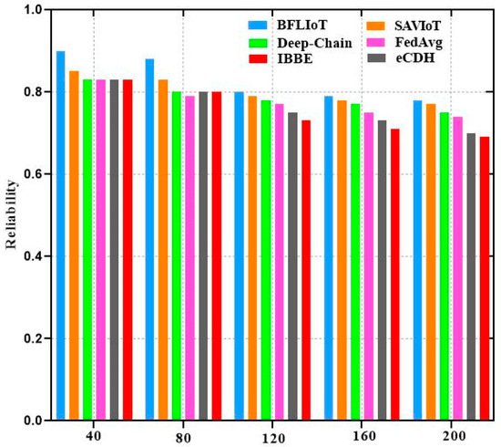 Reliability: In the context of the IoT, it represents the system’s ability to operate correctly and consistently over time without failures. This metric is crucial in distributed networks where consistent operation is vital for data integrity, user trust, and overall system performance. Equation (13) defines the reliability:
