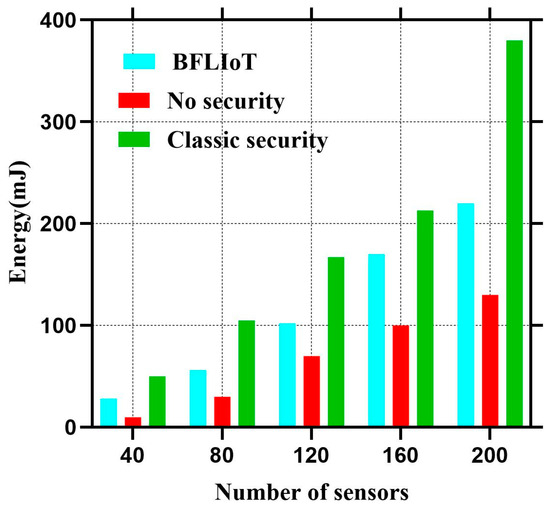 Energy efficiency: In a blockchain-integrated FL framework for the IoT, managing energy consumption involves optimizing computational processes, communication protocols, and data handling to ensure the system’s sustainability, efficiency, and cost-effectiveness despite the inherent challenges posed by the diversity and energy limitations of IoT devices. We define energy efficiency as the ratio between the consumed energy (Ec) and the total quantity of data processed, as expressed by Equation (12):