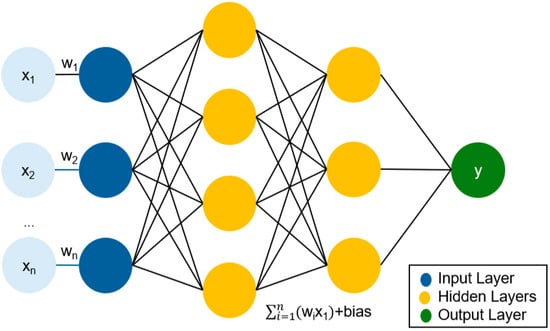 ANNs are mathematical or computational models that mimic the structure and function of biological neural networks and are used to estimate or approximate functions. ANNs have become popular and useful models for classification, clustering, pattern recognition, and prediction in various disciplines. ANNs are a type of model for machine learning (ML) and have become relatively competitive with traditional regression and statistical models in terms of effectiveness []. The great potential of ANNs lies in their high-speed processing capabilities, especially in massively parallel implementations, which has increased the interest in studying this field [,].