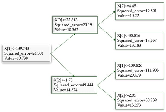 A diagram of a decision tree is shown in Figure 6, where X [0], X [1], and X [2] represent latitude, longitude, and elevation, respectively.