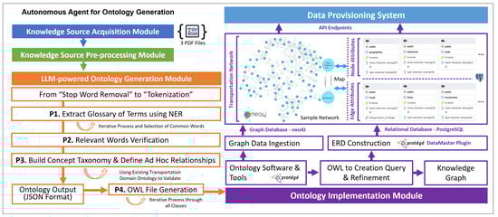 - Automated Ontology Design: The workflow should adhere to the practices and procedures of well-established ontology design methodologies, including Methontology, OTKM, and NeON (see Section 2.2). This adherence will enable it to create robust knowledge representations characterized by high granularity, reusability, flexibility, and semantic consistency.