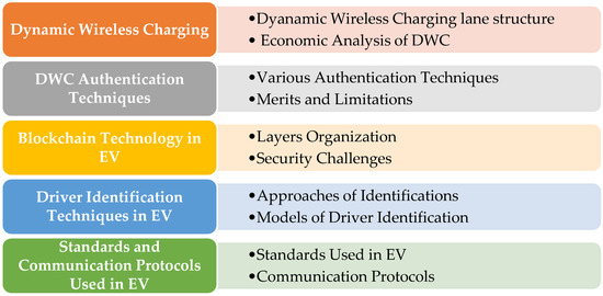 The remainder of this paper is organized as follows: Section 2 provides a description of DWC construction and its economic analysis, and Section 3 presents different types of authentication techniques used in the DWC system. Section 4 then outlines the related works on blockchain and its applications in IoVs. The driver identification system and various models are presented in Section 5. Standards and protocols and new communication technologies for EVs are presented in Section 6 and Section 7, which concludes the paper.