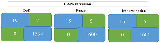 - Minawi, O.; Whelan, J.; Almehmadi, A.; El-Khatib, K. Machine learning-based intrusion detection system for controller area networks. In Proceedings of the 10th ACM Symposium on Design and Analysis of Intelligent Vehicular Networks and Applications, Alicante, Spain, 16–20 November 2020; pp. 41–47. [Google Scholar]