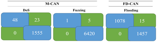 - Wang, X.; Xu, Y.; Xu, Y.; Wang, Z.; Wu, Y. Intrusion Detection System for In-Vehicle CAN-FD Bus ID Based on GAN Model. IEEE Access 2024, 12, 82402–82412. [Google Scholar] [CrossRef]