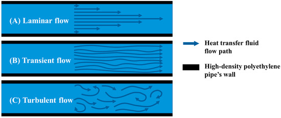 It is important to understand the basic concept of thermal conductivity in geomaterials. Effective thermal conductivity () is a property that quantifies a material’s ability to conduct heat, defined as the amount of heat that passes through a unit area per unit time given a temperature gradient. It is measured in watts per meter per degree Celsius (W/m·°C). Table 2 shows the typical values of effective thermal conductivity for common geomaterials used in heat transfer simulations.