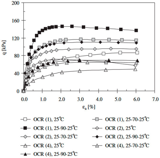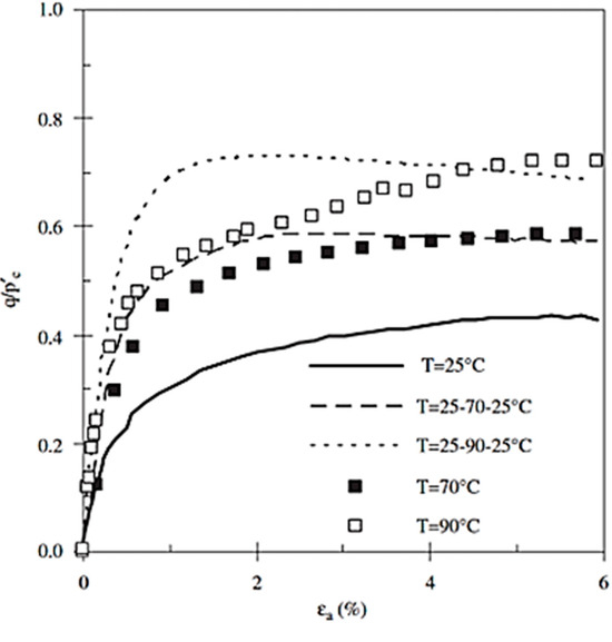 - Cekerevac, C.; Laloui, L. Experimental Study of Thermal Effects on the Mechanical Behaviour of a Clay. Int. J. Numer. Anal. Methods Geomech. 2004, 28, 209–228. [Google Scholar] [CrossRef]