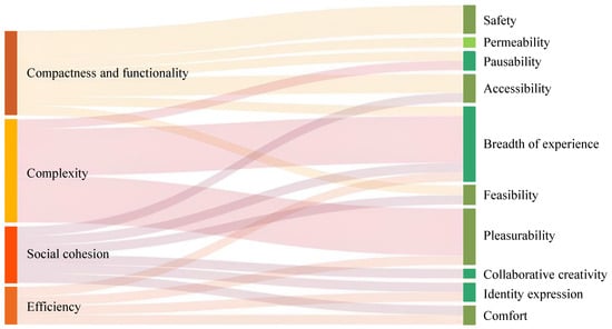 Active mobility enhances urban efficiency by integrating spaces for leisure and relaxation within compact urban areas. These spaces must be designed to be safe and accessible, equipped with amenities like benches and lighting [62], and connected to alternative transport networks such as public transit and bike-sharing. The unobstructed permeability of streets ensures that active mobility remains a viable, time-efficient option, contributing to the overall accessibility and quality of urban life.