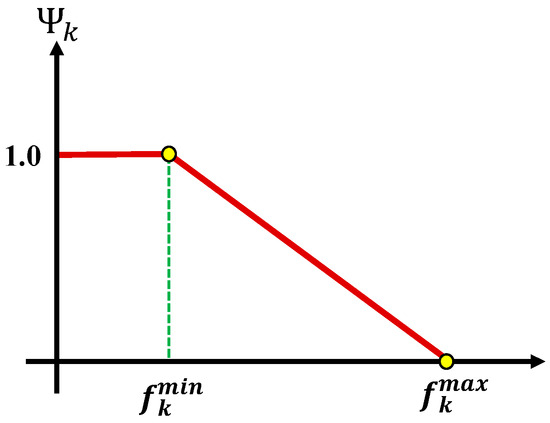 where Ψk denotes the fuzzy set for kth objective function; fk indicates kth objective function; fkmin and fkmax are, respectively, minimum and maximum boundaries for kth objective function and X is the vector of decision variables of the problem.