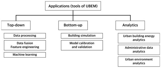 Energy consumption in cities arises from interactions between multiple sectors, including buildings, mobility, industry, and infrastructure, necessitating a holistic and comprehensive analysis [5,6]. Within the realm of buildings, energy consumption considerations should extend beyond intra-building usage to include inter-building physical interactions. These inter-building physical interactions encompass factors such as shading effects from neighboring structures, variations in wind flow due to building spacing and height differences, and the influence of thermal radiation exchange between buildings. Such interactions significantly impact energy performance, making their consideration essential for accurate urban-scale energy modeling. Urban building energy modeling (UBEM) has recently become a vital tool for predicting and analyzing building energy consumption on an urban scale [7,8,9]. Through UBEM, it is possible to predict and analyze citywide energy consumption patterns by considering individual building energy characteristics, inter-building interactions, and relationships with surrounding environments. One of UBEM’s main strengths is its ability to comprehensively incorporate diverse building types, ages, energy systems, and climatic factors [10]. This capability plays a critical role in accurately assessing building energy performance and scientifically formulating energy-saving strategies applicable across various urban zones [11]. Moreover, UBEM continues to evolve with advancements in technology, providing new insights and information on urban building energy consumption characteristics through the integration of artificial intelligence, machine learning, and diverse data analysis techniques [12].