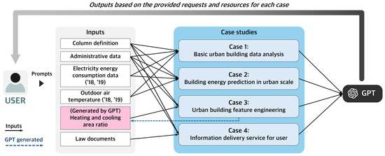 In this study, we examine three cases to demonstrate the application of the GPT-based I-UDT, using real-world data from 3500 buildings in Seoul, South Korea. The datasets consist of administrative building data, which provide detailed information about building types, sizes, and construction years; energy consumption data, which track the energy usage patterns of various buildings over time, deriving from the Korea Real Estate Board (REB); and outdoor temperature data from the Korea Meteorological Administration (KMA), which are crucial for evaluating the impact of climatic conditions on building energy performance. To ensure consistency and accuracy, a column definition sheet was utilized to standardize data structures across different sources. Additionally, the energy dataset does not extend to the level of individual household meters; instead, it consists of monthly electricity energy data. Therefore, the data used in this study pose minimal privacy concerns. These open datasets were provided by DataNet, a national research project launched in 2023 and funded by the Korea Agency for Infrastructure Technology Advancement (KAIA) [33]. DataNet was instrumental in supporting the collection and integration of multi-source data, encompassing both structured and unstructured datasets related to urban buildings in South Korea. Furthermore, GPT-4o [29] was employed to explore and implement GPT-based UBEM applications in this study. This tool was utilized to process administrative and technical documents as well as integrate and analyze multi-source data. This use of GPT-4o was critical for ensuring accurate and reliable results, and all GPT outputs were incorporated into the study results as generated, with only minor edits, such as omissions of intermediate outputs. Also, due to the inherent randomness of GPT responses, each task was repeated five times per case, and the results deemed most useful from the user’s perspective were selected and summarized.