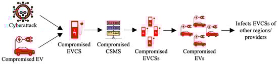 Table 1 lists various types of cyberattacks and their potential impacts on EV charging stations and infrastructure within a smart city. Figure 1 shows how cyberattacks can infect EVs and their charging networks.