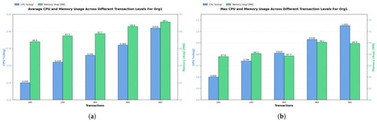 This blockchain model can be implemented on various cloud platforms, including IBM, Amazon AWS, Google Cloud, and Microsoft Azure [43]. The price of using electric power and energy for transactions between EVSE and EV users can be viewed as the cost of implementing and running the proposed approach on a cloud platform. The Caliper performance report for our model shows a maximum average CPU utilization of 0.73% (peer0.org1) and a peak memory usage of 132 MB per 500 transactions. The traffic consumption for 500 transactions was recorded as 17.403 MB inbound and 16.972 MB outbound. The initial test was conducted on an Intel 14th Gen Core i7-14700F processor with 20 cores and 28 threads, running at 5.4 GHz, supported by 16 GB of DDR3 RAM and a 512 GB HDD. Scaling this workload to handle approximately 100,000 transactions per day would require around 26.2 GB of memory, 3.48 GB of inbound traffic, and 3.39 GB of outbound traffic.