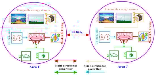 Figure 1, which can generate greater profits and superior reliability compared to a sole area system. Such combinations have not been explicitly explored previously, especially optimized scheduling in multi-area-based VPP networks, and categorically speaking, there is ample scope in this domain to explore the possibility of a MAREA-based power system specifically from a VPP context through multiple scheduling strategies.