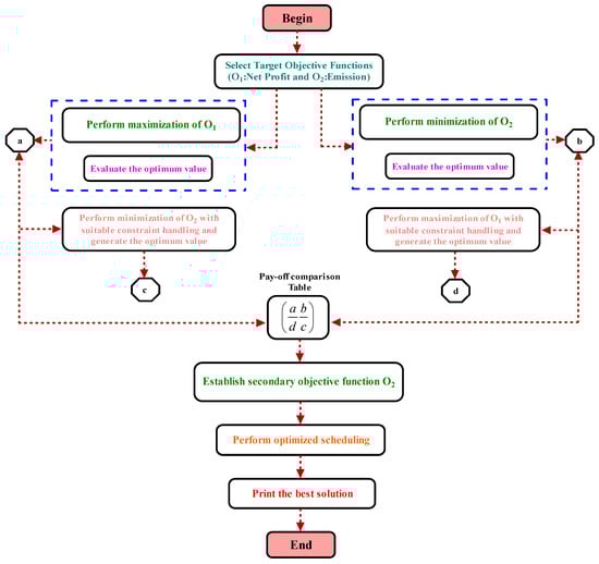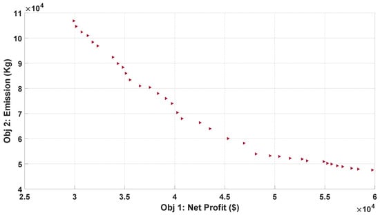 Figure 4. Due to the multiple objectives involved in the work, performing optimal scheduling in the proposed MAREAVPP network is complicated. Therefore, a multi-objective approach is adapted along with Pareto-based estimation method to determine the best possible solution at a given point in time. Both objectives are framed in a multi-area framework while keeping economic and environmental points of view in consideration. The intent is to evaluate the economic feasibility of VPP in a MAREAVPP by leveraging the monetary benefits followed by a drop in emissions.