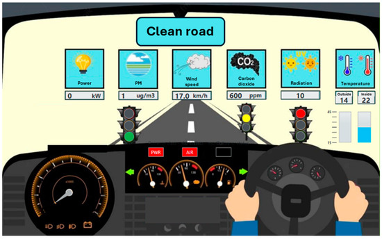 A modular monitoring system (Section 2.2) was installed at the school to enable real-time monitoring of air quality and various environmental parameters. To make this data accessible to students, a user-friendly interface was created (see Figure 2), allowing live data to be displayed for each classroom. Additionally, a color-coded display was used to help young students quickly identify which measurements were outside the recommended ranges.