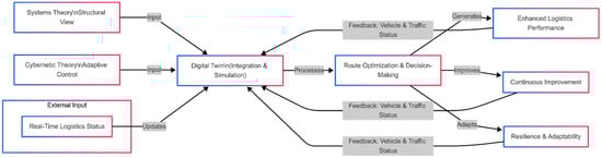 Cybernetic Theory, introduced by Norbert Wiener (1948) [22], focuses on control, communication, and the adaptive feedback loops within systems [22]. It is particularly relevant to smart city logistics, where transportation networks must continuously adjust based on real-time urban conditions. In logistics, Cybernetic Theory provides a mechanism for self-regulation, enabling logistics networks to monitor operational performances, detect inefficiencies, and adjust dynamically based on feedback from IoT-enabled sensors [23].