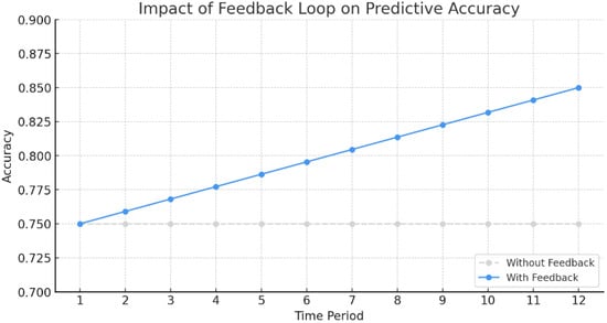 The line chart below (Figure 12) illustrates how the feedback loop impacts predictive accuracy over time, with accuracy improving as the model incorporates real-time data from the feedback loop. The trend shows a steady increase in accuracy, highlighting the adaptive capacity of the model. This figure highlights the feedback loop’s role in enabling the model to adapt dynamically to logistics conditions, validating the cybernetic approach to continuous improvement. This supports Objective 3, as it demonstrates the effectiveness of feedback mechanisms in refining predictive accuracy based on real-time inputs.