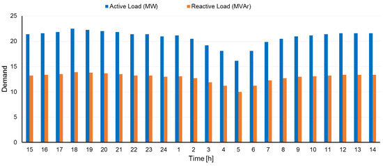 To achieve an optimal hourly solution in day-ahead market participation, the operator considers the wholesale market information in grid-connected operation with the upstream network for 24 h scheduling. One-hour time steps are sufficient for the optimization of the islanded operation, although smaller time steps can bring more details. Based on EVP availability, the start hour of the scheduling horizon is assumed to be 15:00. Choosing 19:00 to 7:00 as after-working hours is a reasonable consideration for a residential charging pattern and this charging period can provide efficient load shifting.